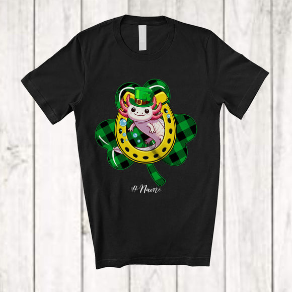 Personalized Custom Name Axolotl Plaid Shamrock Horseshoe; Joyful St. Patrick's Day Animal Lover T-Shirt