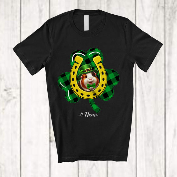 Personalized Custom Name Guinea Pig Plaid Shamrock Horseshoe; Joyful St. Patrick's Day Animal T-Shirt