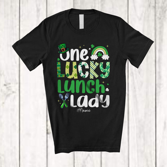 Personalized Custom Name One Lucky Lunch Lady; Lovely St. Patrick's Day Shamrock Rainbow T-Shirt