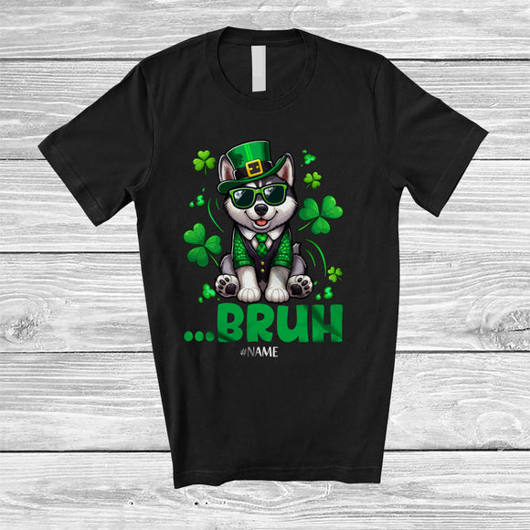 Personalized Custom Name Bruh Husky; Joyful St. Patrick's Day Husky Leprechaun Shamrocks T-Shirt
