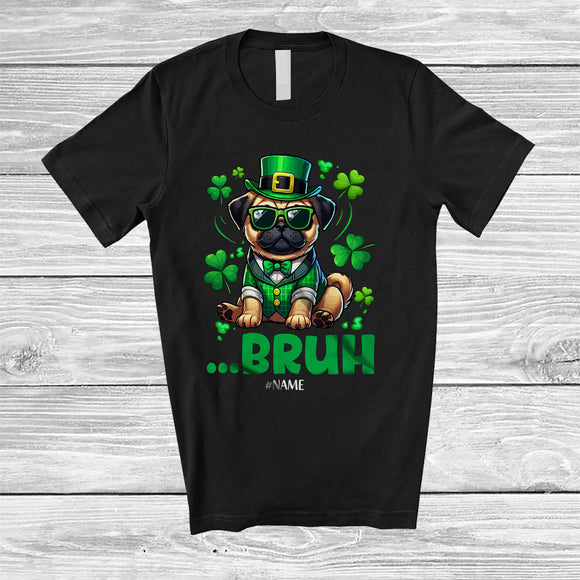 Personalized Custom Name Bruh Pug; Joyful St. Patrick's Day Pug Leprechaun Shamrocks T-Shirt