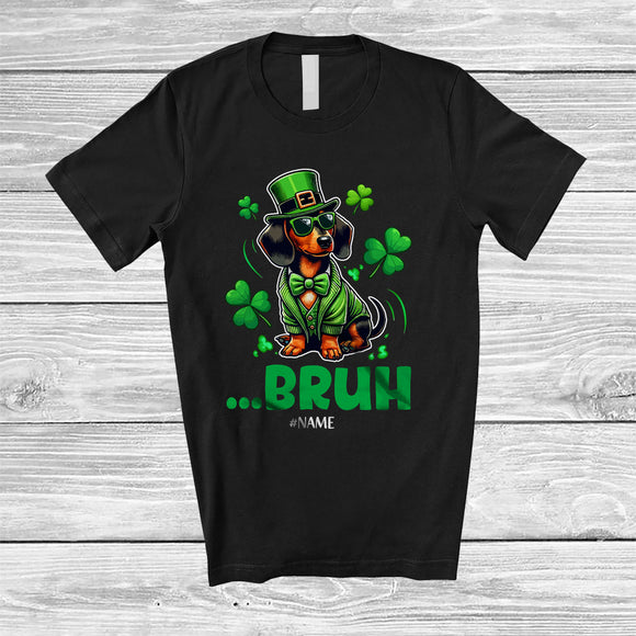 Personalized Custom Name Bruh; Joyful St. Patrick's Day Dachshund Leprechaun Shamrocks T-Shirt