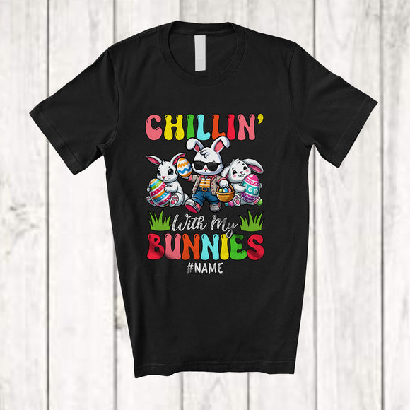 Personalized Chillin' With My Bunnies; Amazing Easter Custom Name Three Bunnies; Eggs Hunt T-Shirt
