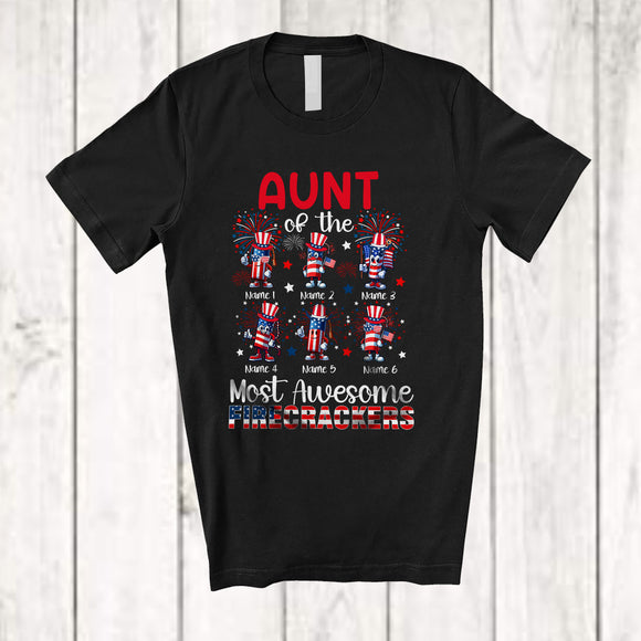 Personalized Custom Name Aunt Of The Most Awesome Firecrackers; Lovely 4th Of July Fireworks T-Shirt