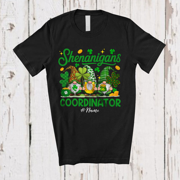 Personalized Custom Name Shenanigans Coordinator; Lovely St. Patrick's Day 3 Leopard Gnomes T-Shirt