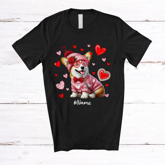 Personalized Custom Name Corgi Heart Sunglasses; Lovely Valentine Hearts; Family T-Shirt