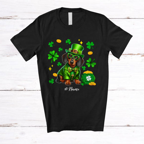 Personalized Custom Name Dachshund Leprechaun Glasses; Amusing St. Patrick's Day Shamrock T-Shirt