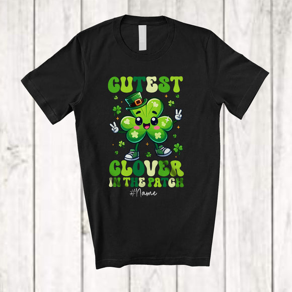Personalized Custom Name Cutest Clover In The Patch; Lovely St Patrick's Day Groovy Shamrock T-Shirt