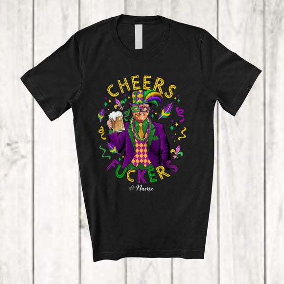 Personalized Custom Name Cheers Fuckers; Joyful Mardi Gras President Trump; Drinking Beer T-Shirt