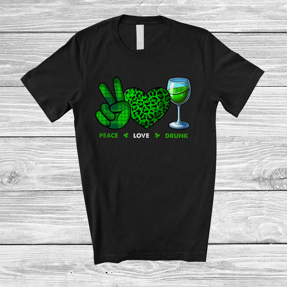 Peace Love Drunk; Amusing St. Patrick's Day Green Peace Hand Sign Heart; Wine Drinking T-Shirt