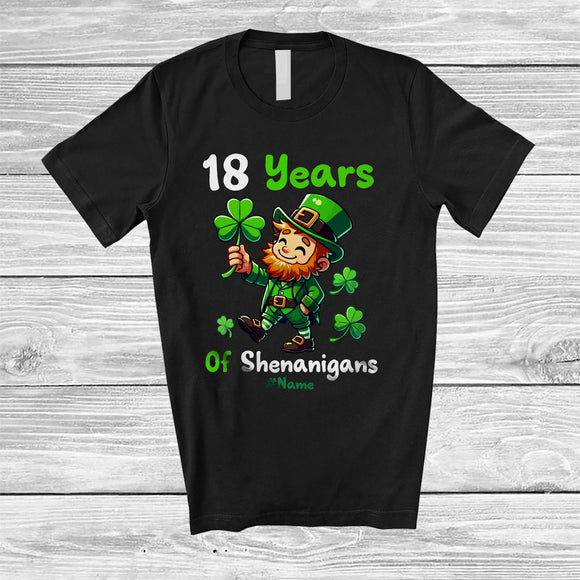 Personalized Custom Name 18 Years of Shenanigans; Joyful St. Patrick's Day 18th Birthday Family T-Shirt