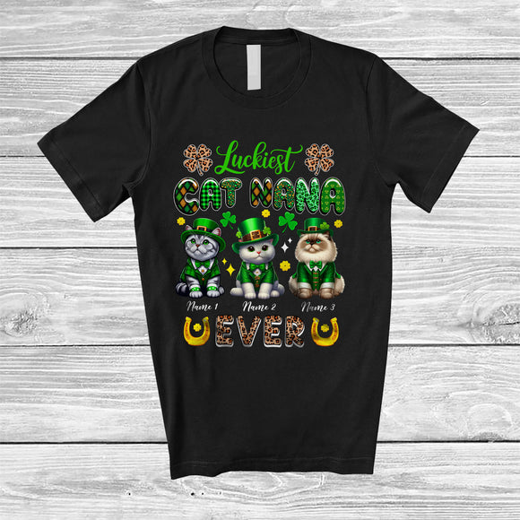 Personalized Custom Name Luckiest Cat Nana Ever; Lovely St. Patrick's Day Leprechaun Family T-Shirt