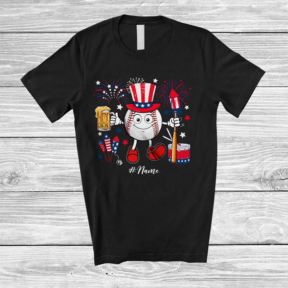 Personalized Baseball Drinking Beer; Proud 4th Of July Custom Name Baseball Player; Patriotic T-Shirt