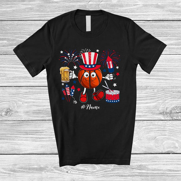 Personalized Basketball Drinking Beer; Proud 4th Of July Custom Name Basketball Player; Patriotic T-Shirt