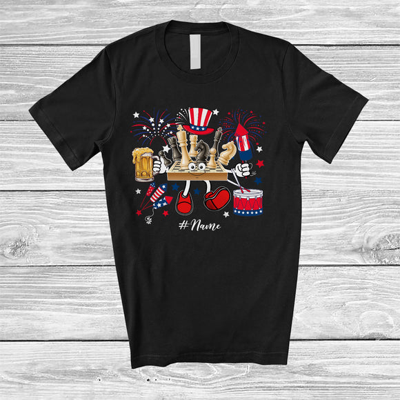 Personalized Chess Drinking Beer; Proud 4th Of July Custom Name Chess Player; Patriotic T-Shirt