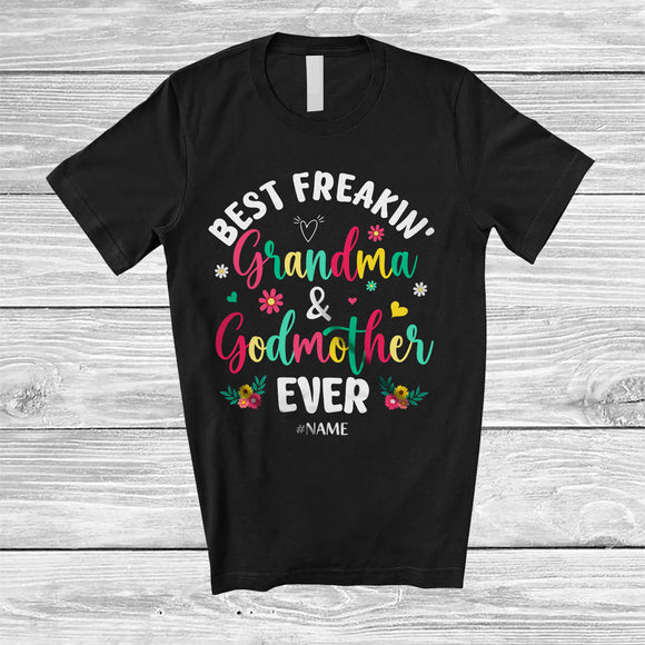 Personalized Custom Name Best Freakin Grandma And Godmother Ever; Happy Mother's Day Floral T-Shirt