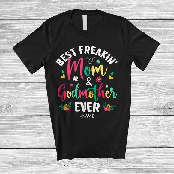 Personalized Custom Name Best Freakin' Mom And Godmother Ever; Happy Mother's Day Floral T-Shirt