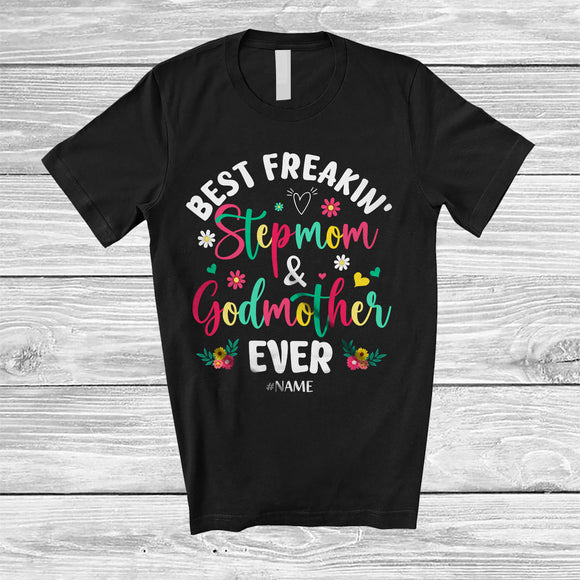 Personalized Custom Name Best Freakin' Stepmom And Godmother Ever; Happy Mother's Day Floral T-Shirt