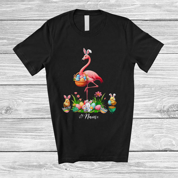 Personalized Custom Name Bunny Flamingo Hunting Eggs Basket; Lovely Easter Bunnies Egg Hunt T-Shirt