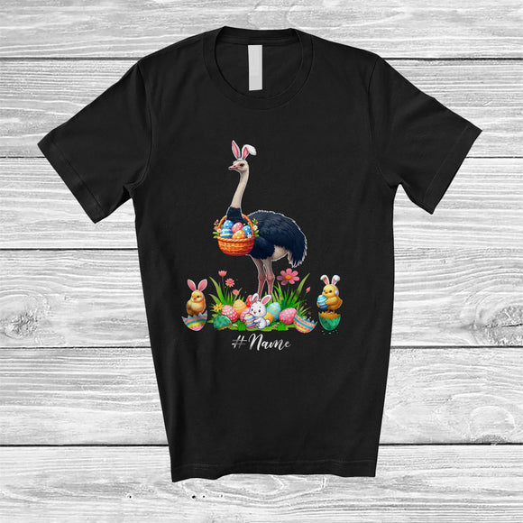 Personalized Custom Name Bunny Ostrich Hunting Eggs Basket; Lovely Easter Bunnies Egg Hunt T-Shirt