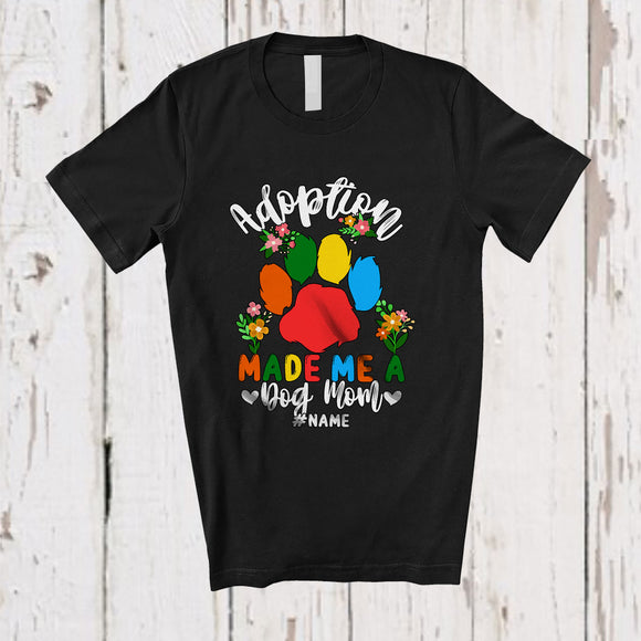Personalized Custom Name Adoption Made Me a Dog Mom; Lovely Mother's Day Paw Flowers T-Shirt