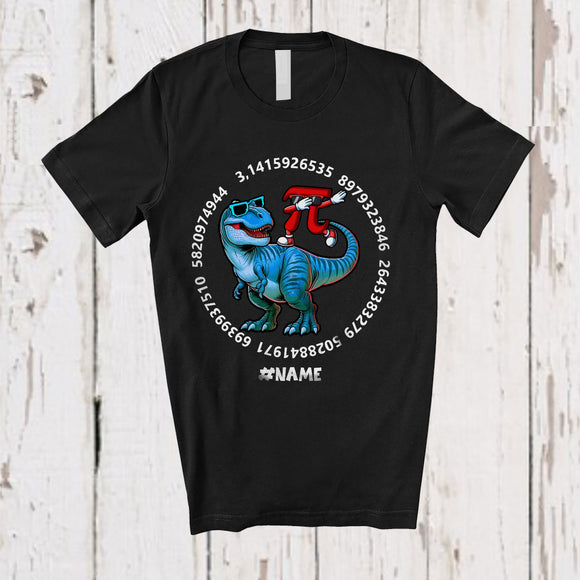 Personalized Custom Name Dabbing Pi Riding T-Rex; Cheerful Pi Day Math Nerd Student Teacher T-Shirt
