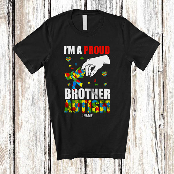 Personalized A Proud Brother Autism; Lovely Father's Day Puzzle Heart; Custom Name Boys Family T-Shirt