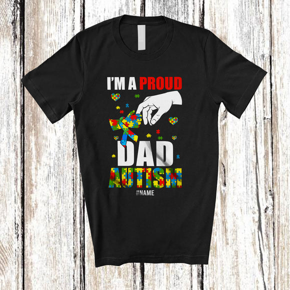 Personalized A Proud Dad Autism; Lovely Father's Day Puzzle Heart; Custom Name Boys Family T-Shirt