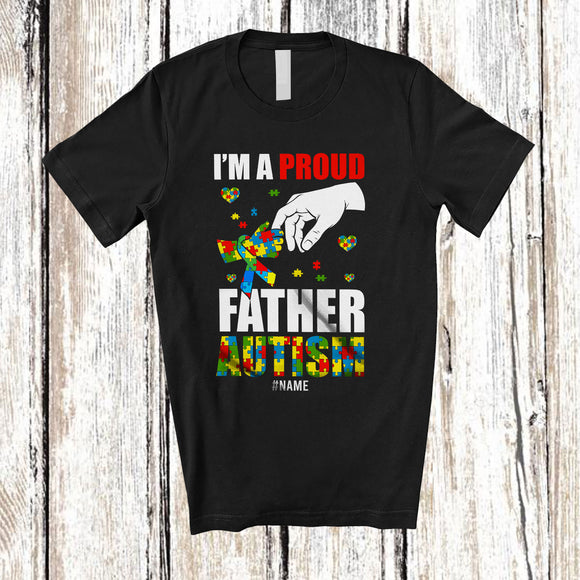 Personalized A Proud Father Autism; Lovely Father's Day Puzzle Heart; Custom Name Boys Family T-Shirt