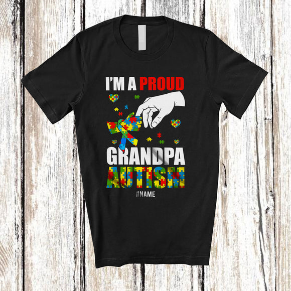Personalized A Proud Grandpa Autism; Lovely Father's Day Puzzle Heart; Custom Name Boys Family T-Shirt