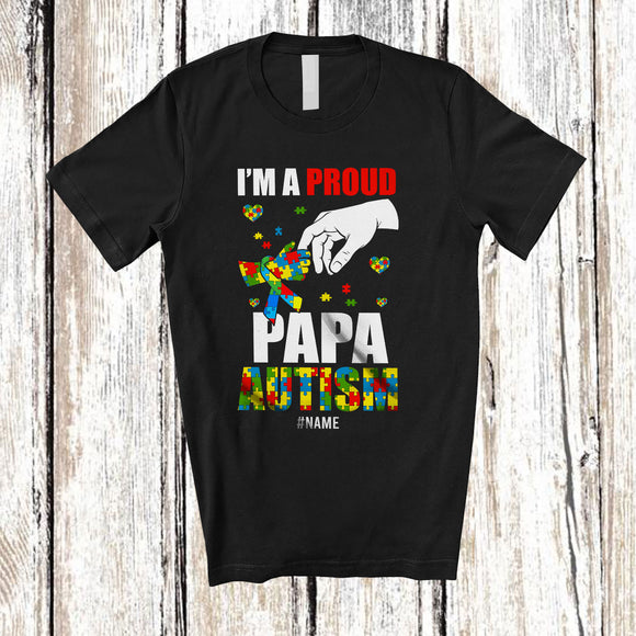Personalized A Proud Papa Autism; Lovely Father's Day Puzzle Heart; Custom Name Boys Family T-Shirt