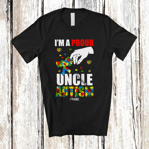 Personalized A Proud Uncle Autism; Lovely Father's Day Puzzle Heart; Custom Name Boys Family T-Shirt