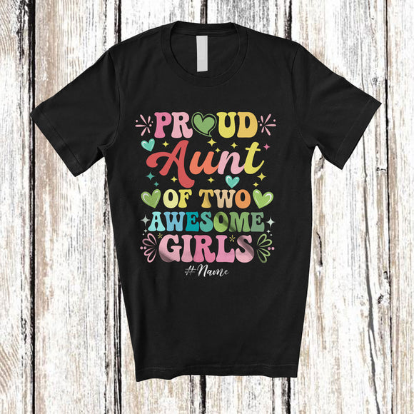 Personalized Aunt of 2 Awesome Girls; Joyful Mother's Day Hearts; Custom Name Family T-Shirt