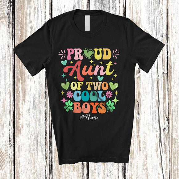 Personalized Aunt of 2 Cool Boys; Joyful Mother's Day Hearts; Grandsons Custom Name Family T-Shirt