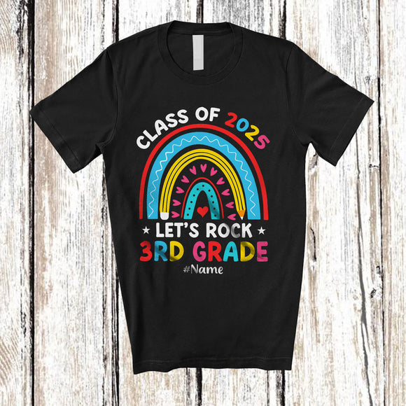 Personalized Class Of 2025 Rock 3rd Grade; Joyful Back To School Rainbow; Custom Name Students T-Shirt