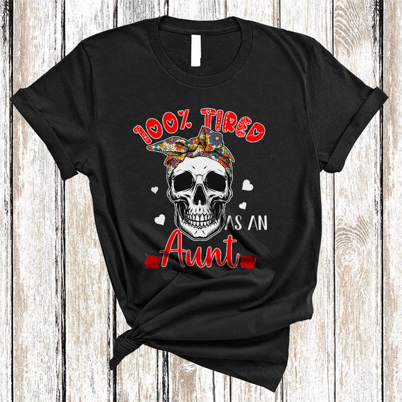 100 Percent Tired As An Aunt, Amazing Mother's Day Flowers Skull Lover, Family Group T-Shirt