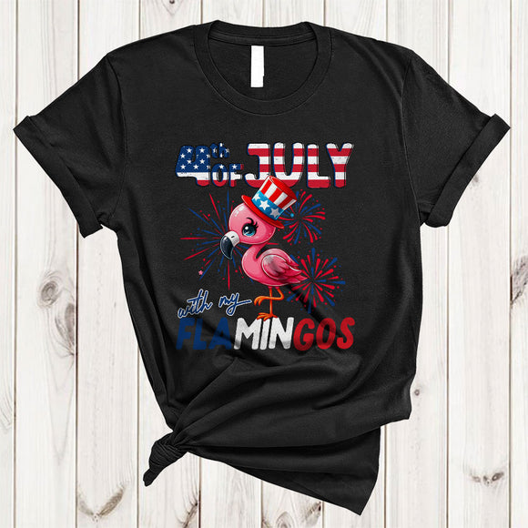 4th Of July With My Flamingos, Cheerful Independence Day Flamingo, American Flag Patriotic T-Shirt