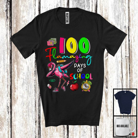 100 Flamazing Days Of School, Adorable 100th Day Of School Dabbing Flamingo, Student Teacher T-Shirt