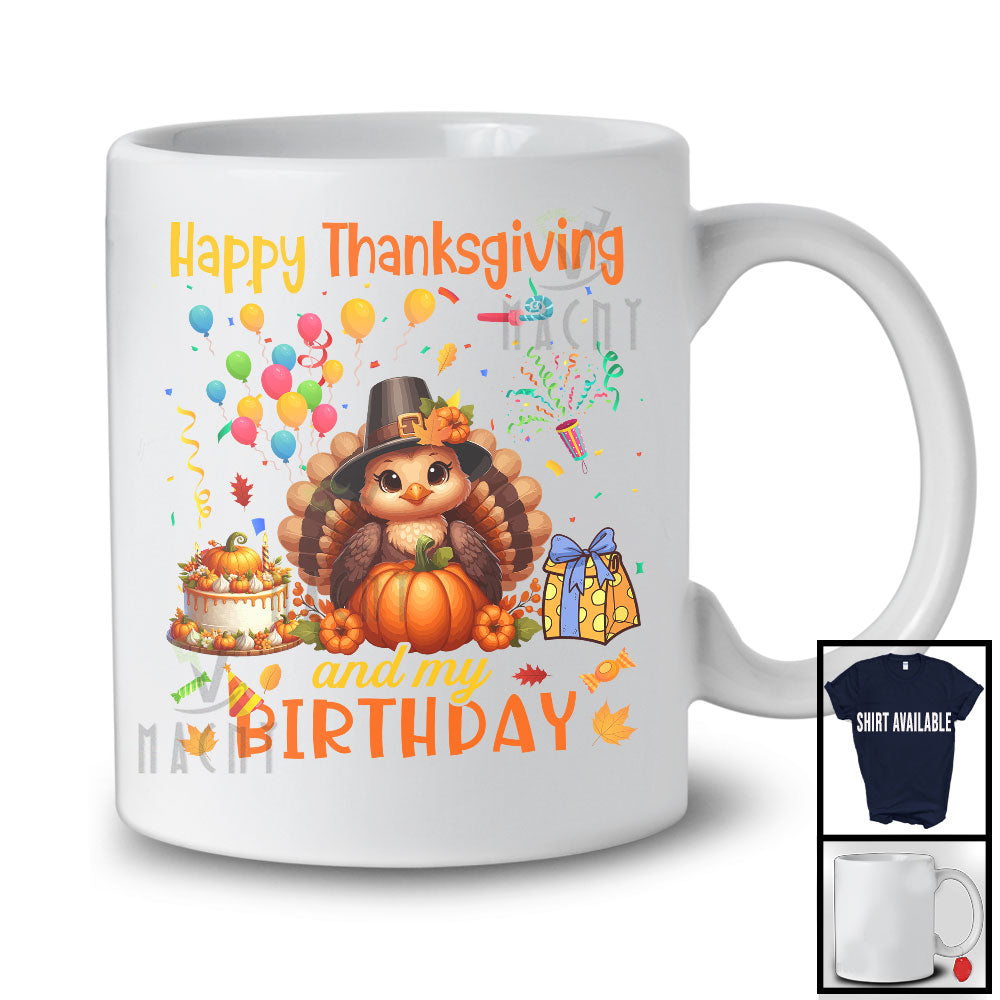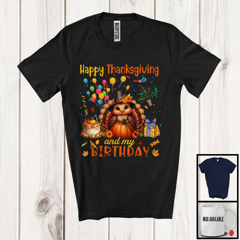 Happy Thanksgiving And My Birthday; Adorable Turkey Pumpkin Lover; Family Group T-Shirt. This cotton t-shirt is a durable staple product with a classic fit. One of the most popular items, it has a relaxed style made for everyday and casual wear.
