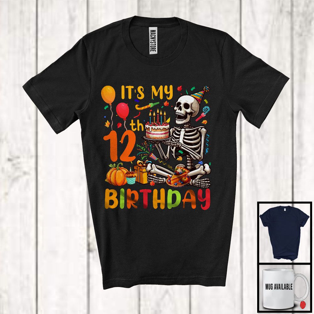 This It's My 12th Birthday; Joyful 12th Birthday Celebration Thanksgiving Skeleton; Family Group T-Shirt is great idea gift for your family, friends in this birthday, christmas, mother's day, father's day, patrick's day or any holiday.