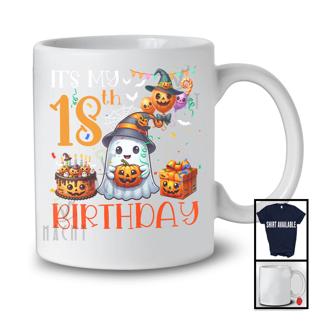 This It's My 18th Happy Birthday, Adorable Halloween Costume Birthday Boo Ghost, Pumpkin Cake T-Shirt is great idea gift for your family, friends in this birthday, christmas, mother's day, father's day, patrick's day or any holiday.