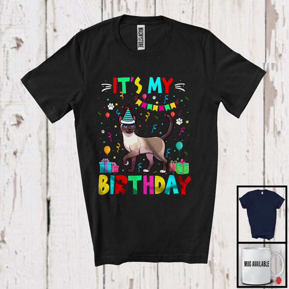This It's My Birthday; Adorable Birthday Party Celebration Siamese Cat Owner Lover; Family Group T-Shirt is great idea gift for your family, friends in this birthday, christmas, mother's day, father's day, patrick's day or any holiday.