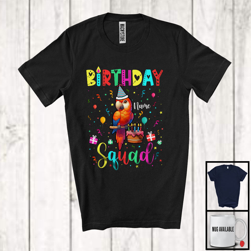 Personalized Custom Name Birthday Squad; Joyful Birthday Cake Parrot; Family Group T-Shirt