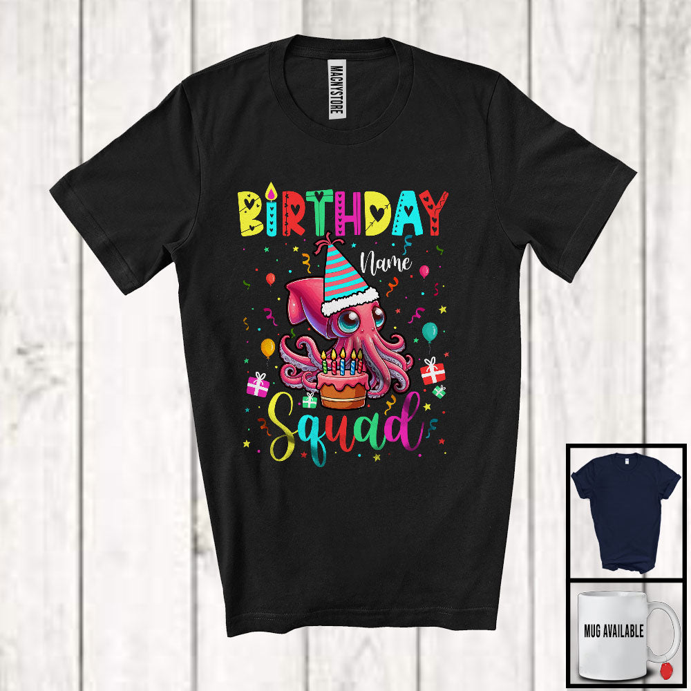 Personalized Custom Name Birthday Squad; Joyful Birthday Cake Squid; Family Group T-Shirt