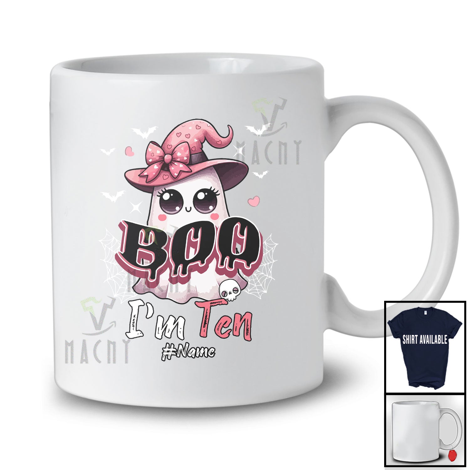 • Personalized Custom Name Boo I'm Ten; Lovely Halloween 10th Birthday Ghost Witch; Girls Family T-Shirt. This cotton t-shirt is a durable staple product with a classic fit. One of the most popular items, it has a relaxed style made for everyday and casual wear.