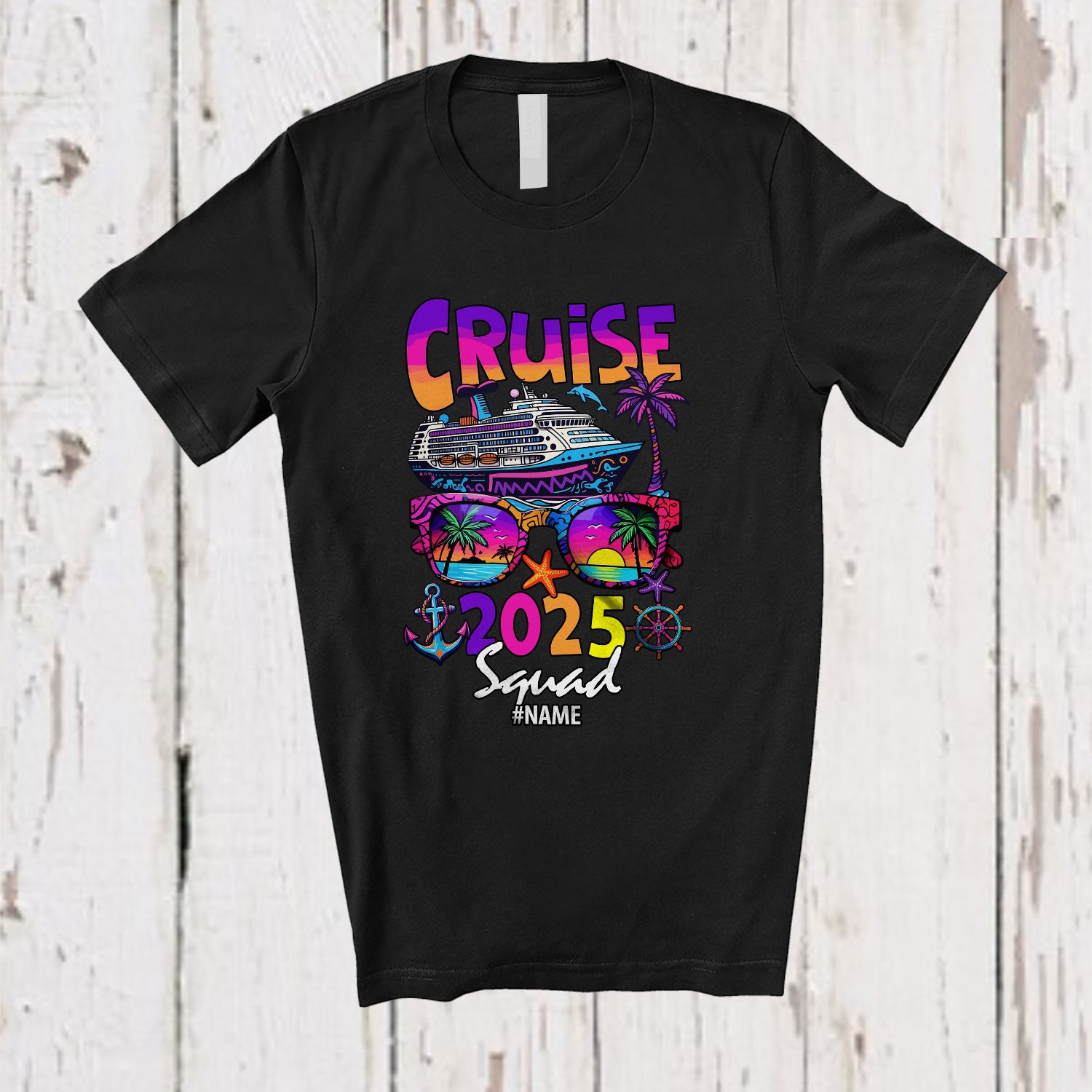 Personalized Custom Name Cruise 2025 Squad; Humorous Summer Vacation Birthday Sunglasses T-Shirt