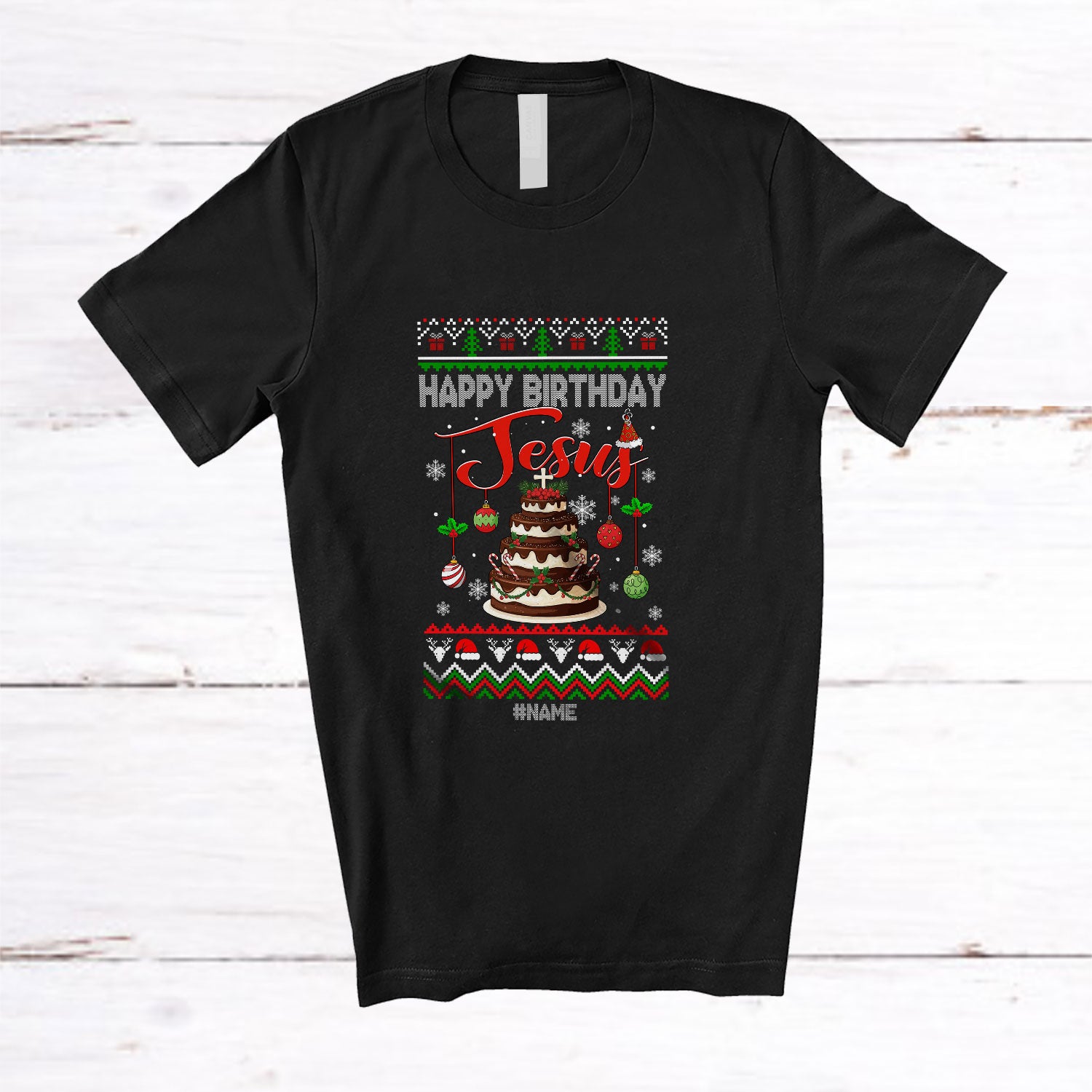 Personalized Custom Name Happy Birthday Jesus; Awesome Christmas Sweater Cake Family T-Shirt