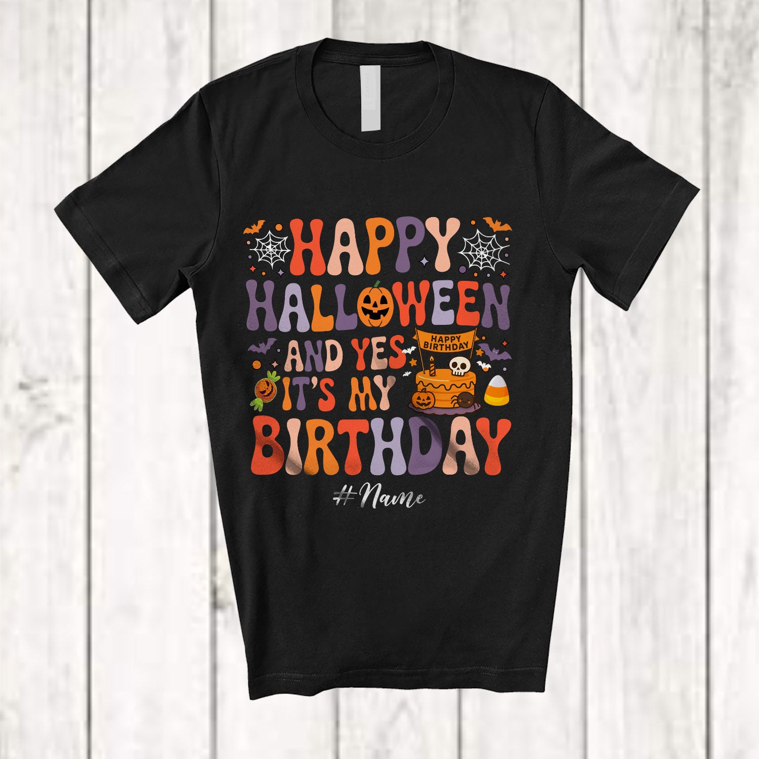 Personalized Custom Name Happy Halloween It's My Birthday; Scary Pumpkin Family Group T-Shirt. This cotton t-shirt is a durable staple product with a classic fit. One of the most popular items, it has a relaxed style made for everyday and casual wear.