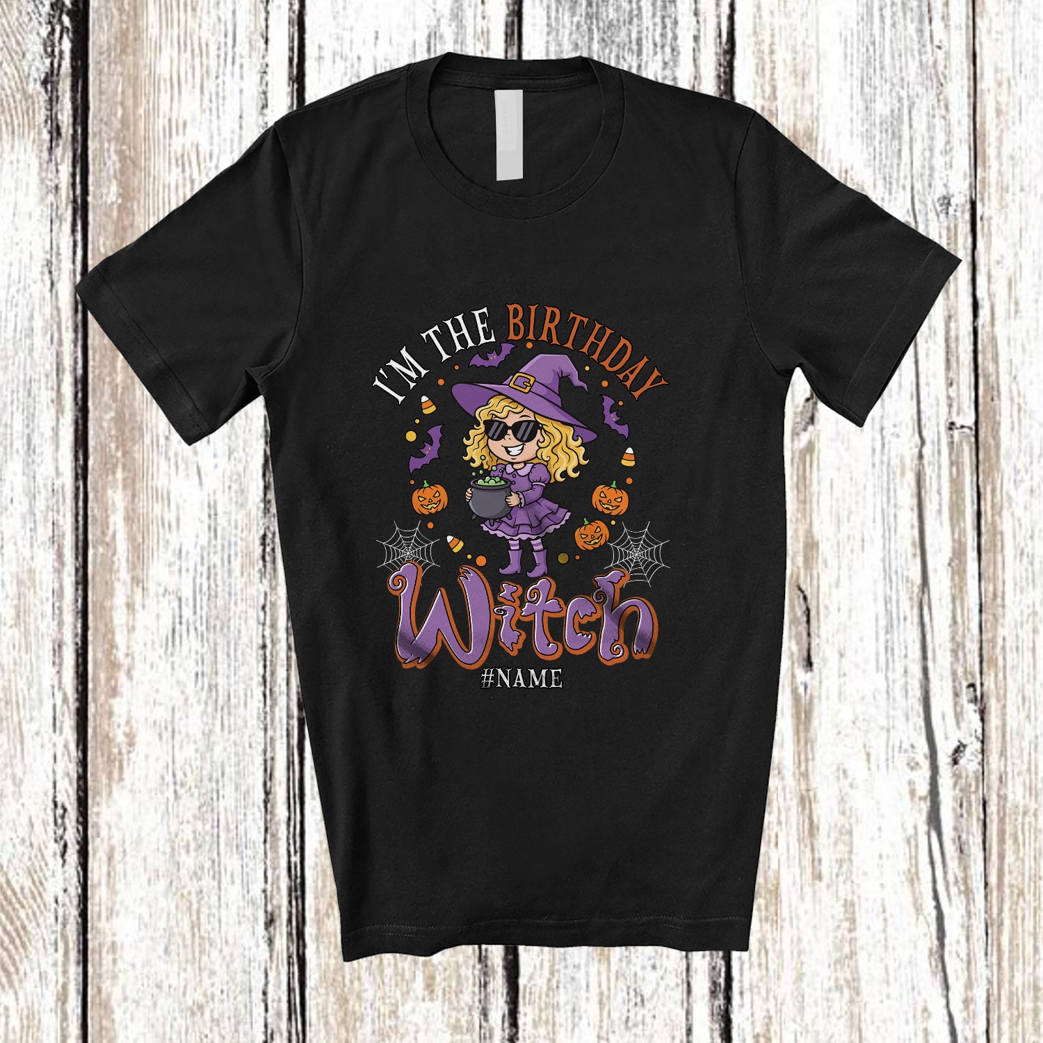 • Personalized Custom Name I'm The Birthday Witch; Amusing Halloween Witch Sunglasses; Family T-Shirt. This cotton t-shirt is a durable staple product with a classic fit. One of the most popular items, it has a relaxed style made for everyday and casual wear.