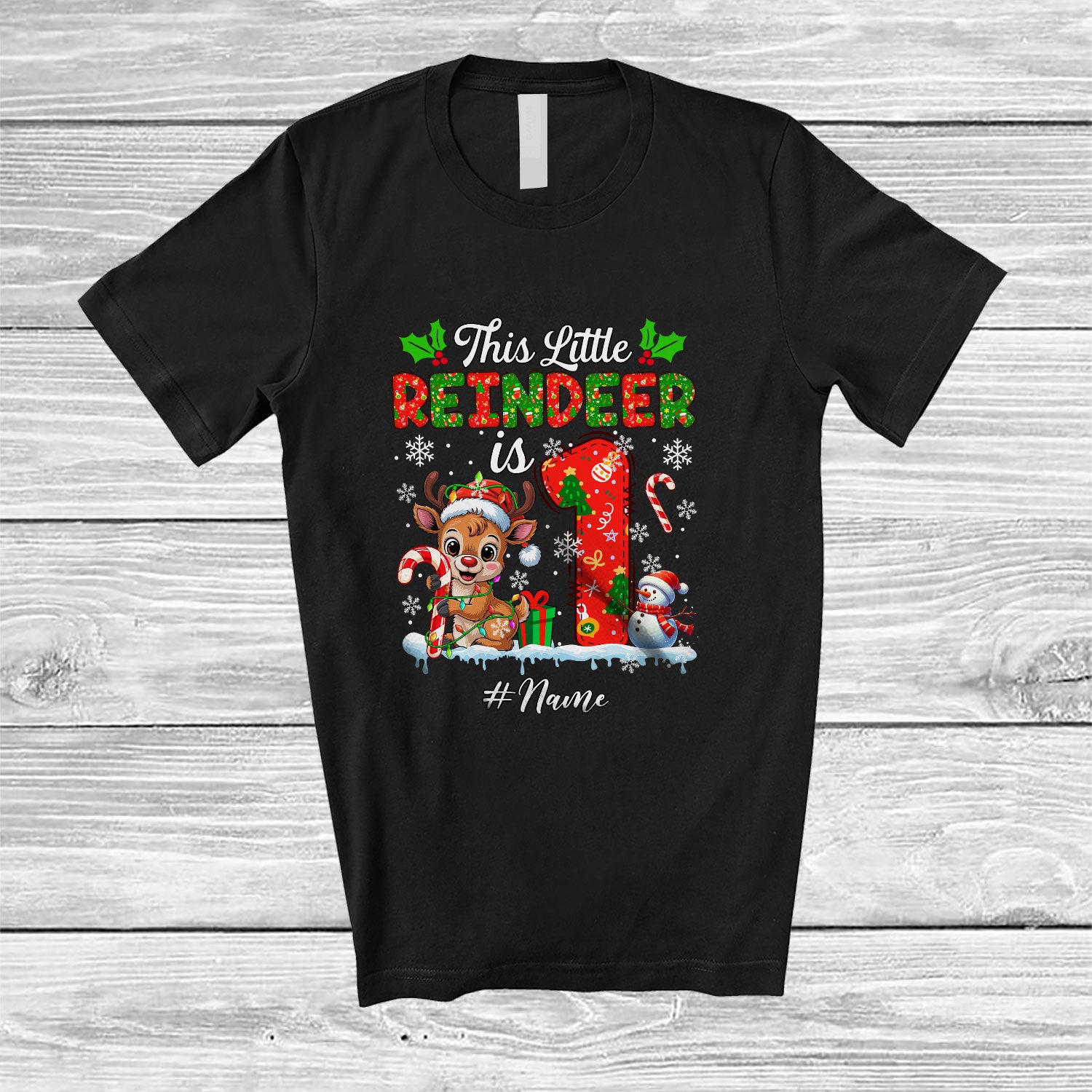 Personalized Custom Name This Little Reindeer Is 1; Joyful 1st Birthday Christmas Family Group T-Shirt